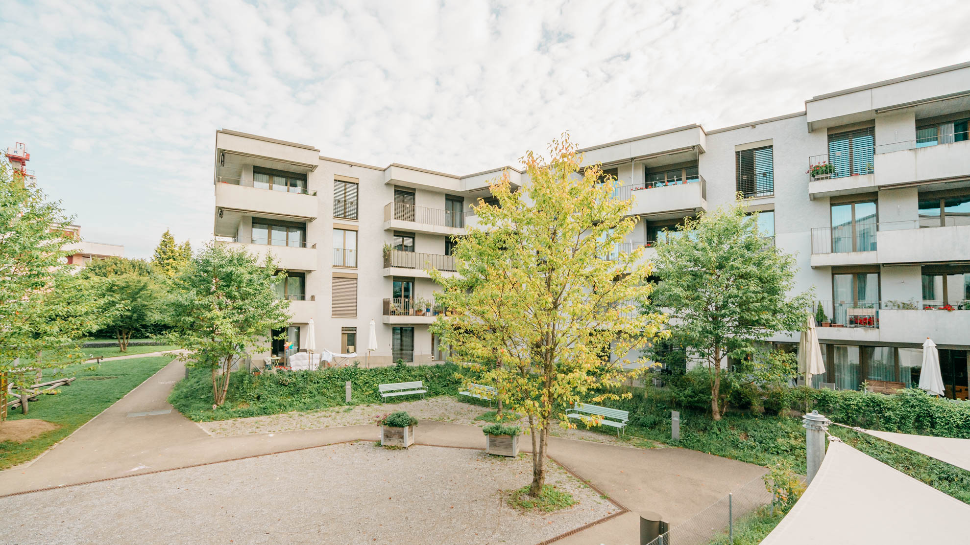 Zur Siedlung gehören ein Lebensmittelladen, eine Kindertagesstätte, eine Pflegewohngruppe sowie ein Gemeinschaftsraum. Die Siedlung wurde nach neuesten baulichen Erkenntnissen erstellt und 2018 bezogen. Alle Wohnungen sind barrierefrei und altersgerecht ausgebaut.